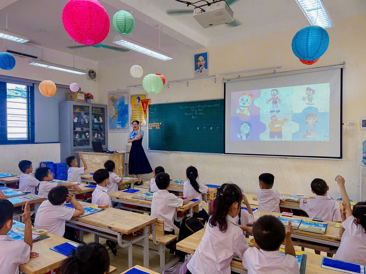 Câu hỏi cô giáo đưa ra nhẹ nhàng dễ hiểu, trình bày bảng khoa học, chữ viết đẹp. Trong quá trình lên lớp các em học sinh được chủ động tham gia vào hoạt động học tập, lĩnh hội kiến thức mới. Khi tham gia hoạt động nhóm, các em thể hiện rõ nhất sự tự tin, nhu cầu chia sẻ với bạn và sự thể hiện chính mình thông qua từng lời nói, ánh mắt của chính các em.