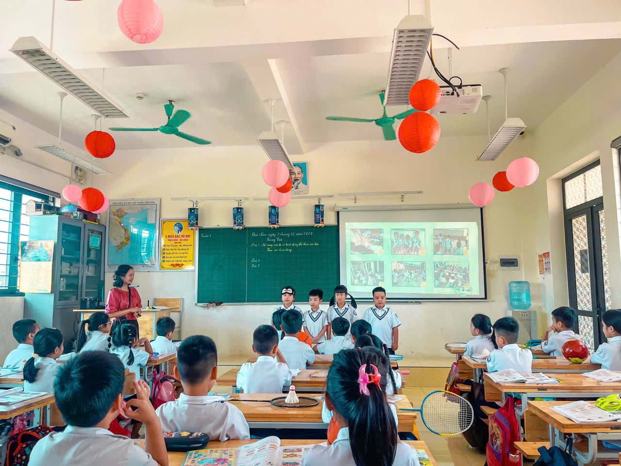 Trong tiết học Luyện từ và câu với chủ đề mở rộng vốn từ về các hoạt động thể thao và vui chơi, học sinh lớp 2A4 đã được trải nghiệm một buổi học thú vị và tràn ngập niềm vui. Cô giáo đã chuẩn bị nhiều hoạt động thực hành cũng như trải nghiệm để giúp các em nắm vững từ vựng một cách sinh động và dễ hiểu.