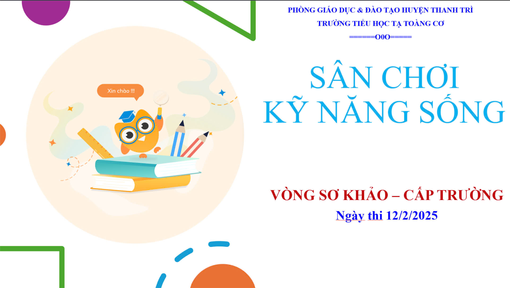 Sáng ngày 12/2/2025, trường Tiểu học Tạ Hoàng Cơ đã tổ chức thành công Vòng sơ khảo sân chơi Kĩ năng sống cấp trường.