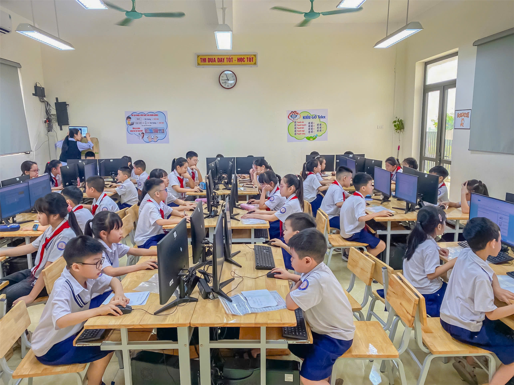 Ngay từ 7 giờ 30 sáng, tại phòng máy tính của nhà trường, không khí đã trở nên vô cùng khẩn trương.