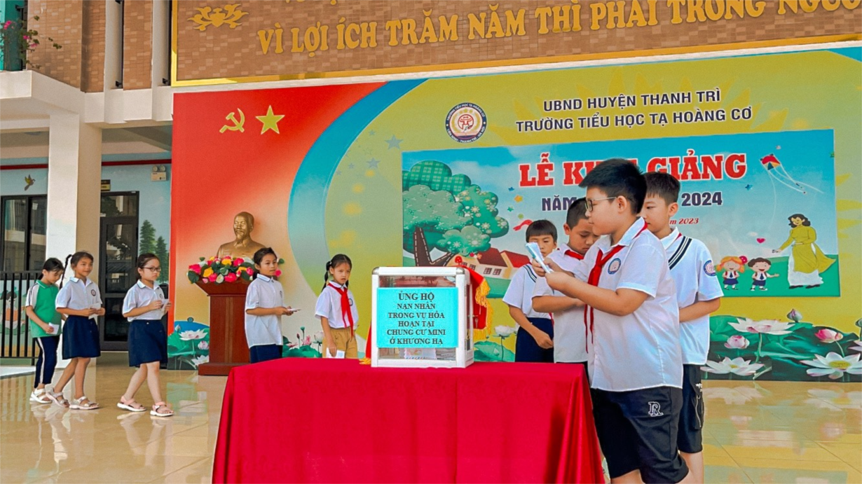 Sáng nay, ngày 20/9/2023, nhà trường đã kêu gọi toàn thể các đồng chí cán bộ - giáo viên - nhân viên và các em học sinh cùng chung tay giúp đỡ, chia sẻ khó khăn với gia đình các nạn nhân trong vụ cháy tại chung cư mini ở Khương Hạ. Hoạt động này đã nhận được sự quan tâm ủng hộ của tập thể cán bộ, giáo viên, nhân viên nhà trường và của đông đảo các em học sinh và phụ huynh.